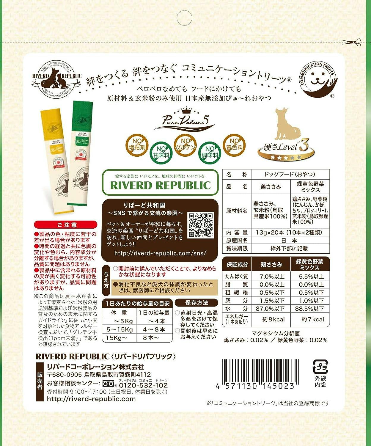 リバードコーポレーション いぬぴゅーれ無添加ピュアPureValue5鶏ささみ 野菜ミックス 20本 ささみ 無添加 ペーストタイプ 5640300001【別送品】