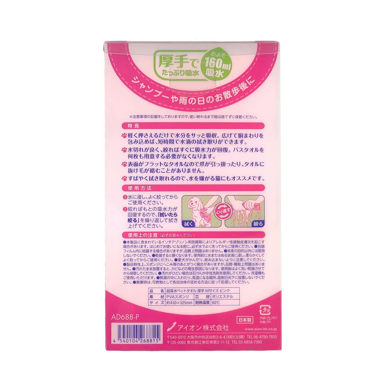 アイオン 超吸水ペットタオル Mサイズ 厚手 ピンク 5990009001【別送品】