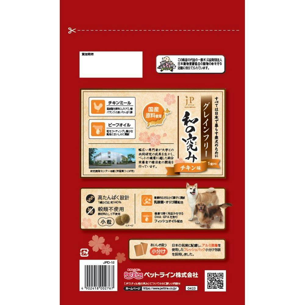 【ケース販売】ペットライン JPスタイル 和の究み 小粒 1歳から グレインフリー チキン味 100g×6パック(1ケース10個入り) 子犬 小粒設計 プレミアムドッグフード 1041129010【別送品】