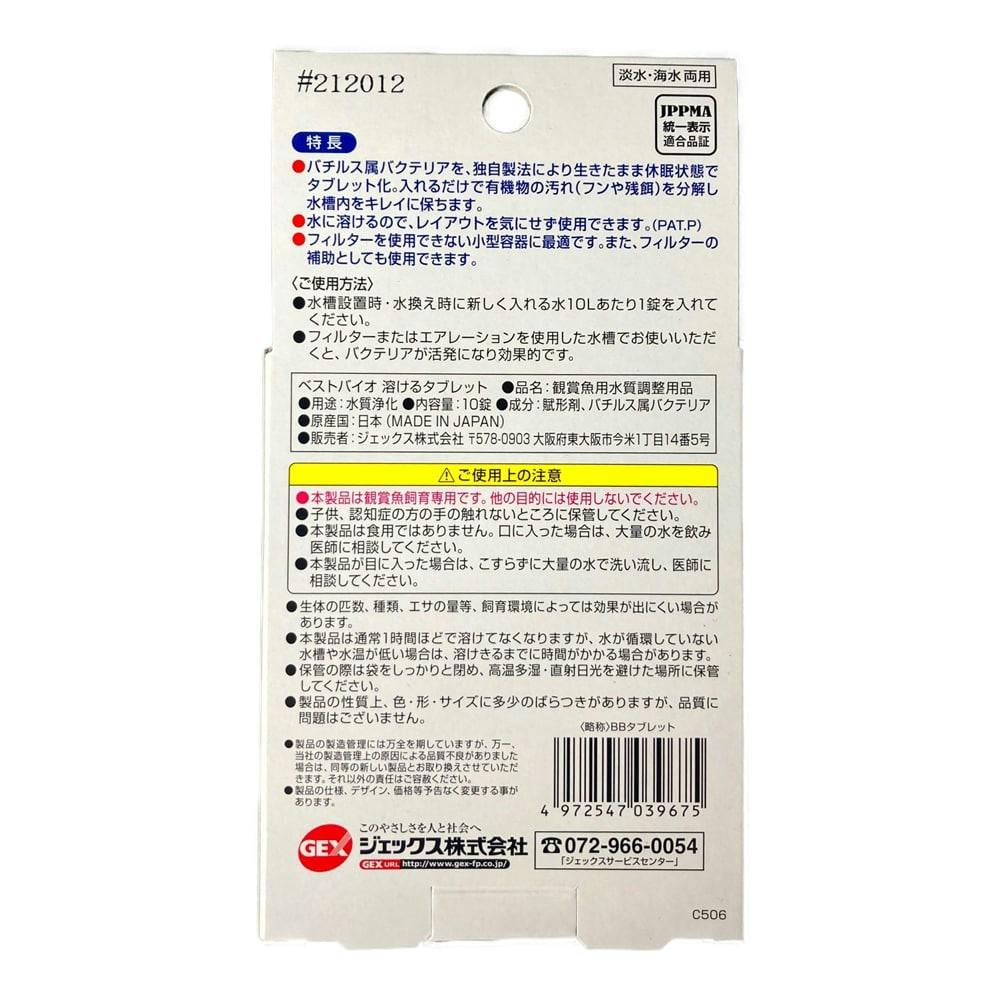 ●バチルス属バクテリアを、独自製法により生きたまま休眠状態でタブレット化。入れるだけで有機物の汚れ(フンや残餌)を分解し水槽内をキレイに保ちます。●水に溶けるので、レイアウトを気にせず使用できます。(PAT.P)●フィルターを使用できない小型容器に最適です。