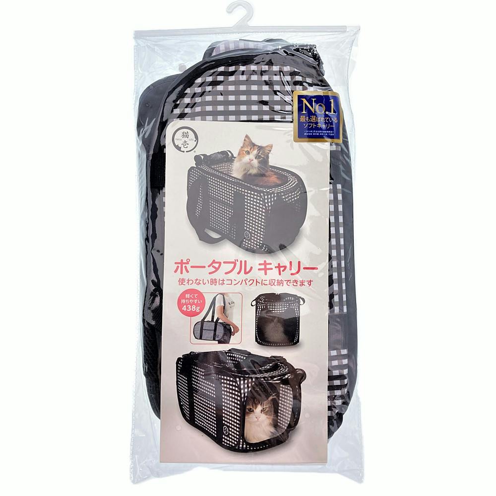 【ケース販売】猫壱 ポータブルキャリー 黒(1ケース12個入り) 猫用キャリー お出かけ ソフトクレート 3190071012【別送品】