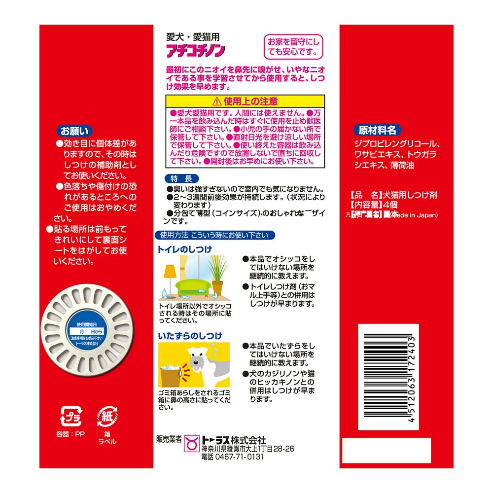 【ケース販売】トーラスアチコチノン 犬猫用しつけ剤 4個入り(1ケース12個入り) しつけ剤 いたずら防止 トイレトレーニング 3420205012【別送品】