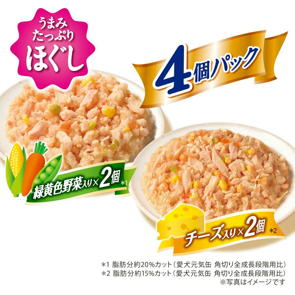 【緑黄色野菜入り】肉類(鶏胸肉、鶏ササミ)、野菜類(ニンジン、グリーンピース、スイートコーン)、しょうゆ、増粘多糖類、塩化カリウム、酸化防止剤(EDTACa・Na) / 【チーズ入り】肉類(鶏胸肉、鶏ササミ)、野菜類(ニンジン、グリーンピース、スイートコーン)、チーズ、しょうゆ、増粘多糖類、塩化カリウム、酸化防止剤(EDTACa・Na)
