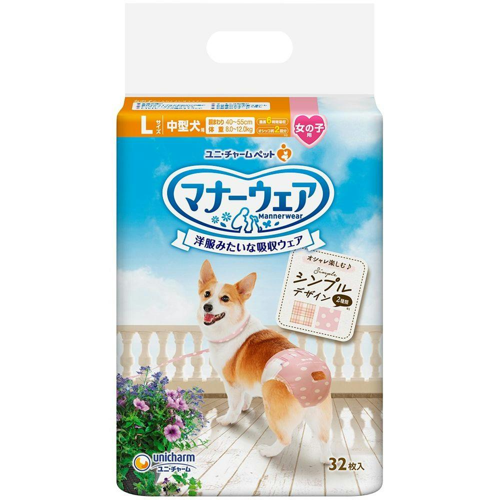 【ケース販売】ユニ・チャーム マナーウェア 女の子用 Lサイズ ベージュチェック・デニム 中型犬用 32枚(1ケース8個入り) マナーウェア オムツ 尿漏れ防止 3481683008【別送品】