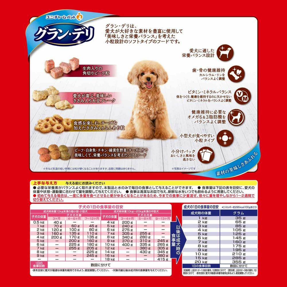グラン・デリは、愛犬が大好きな素材を豊富に使用して「美味しさと栄養バランス」を考えた小粒設計のソフトタイプのフードです。●愛犬に適した栄養バランス設計●歯・骨の健康維持●カルシウム・リンをバランスよく調整●ビタミン・ミネラルバランス