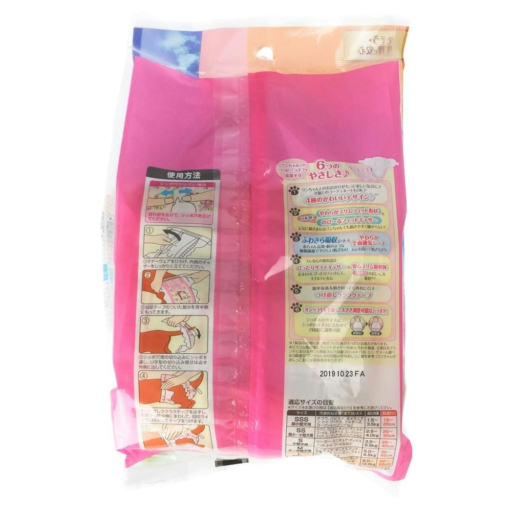 ●そそう、生理に安心●4種類のデザイン●やわらかスリムフィット形状で嫌がらない●やわらか全面通気シート●ぴったりサイドギャザー&安心スリム吸収体●つけ直しラクラクテープ●オシッコモレを防ぐ、大きさ調整可能なシッポ穴●最長6時間吸収、オシッコ約2回分