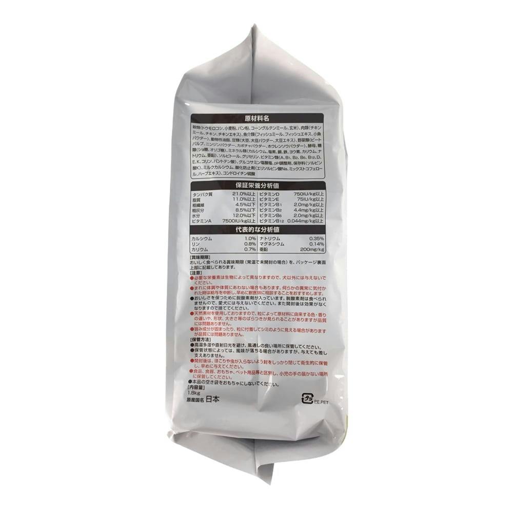 たんぱく質21.0%以上、脂質11.0%以上、粗繊維4.5%以下、灰分8.5%以下、水分12.0%以下