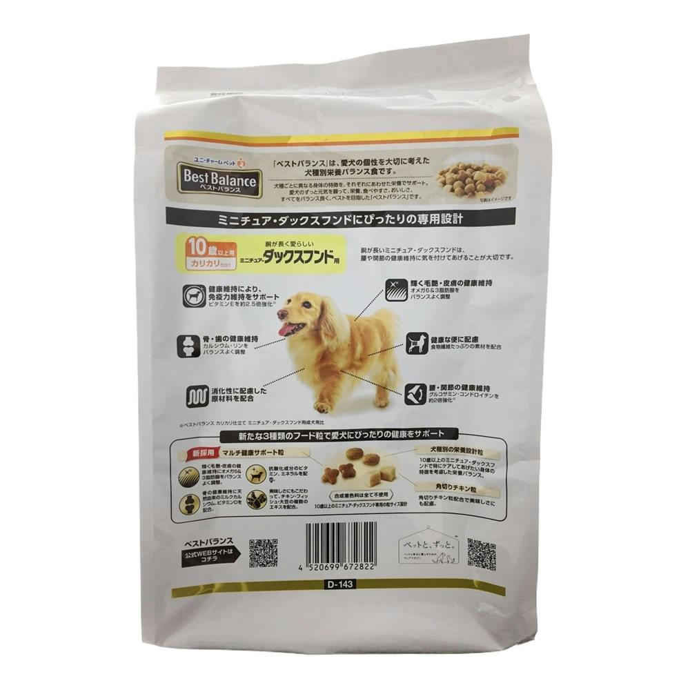 【ケース販売】ユニ・チャーム ベストバランス ミニチュア・ダックスフンド用 10歳以上用 1.8kg(1ケース4個入り) ドライフード 犬種別 ダックスフンド 3481916004【別送品】
