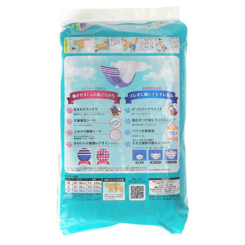 ●そそう対策に、スプレー・マーキング対策に●ズレずに動いてもモレ安心●全面通気ふわさら吸収シート●デニム柄・チェック柄、かわいい2種類のデザイン入り●幅広のつけ直しラクラクテープ●大きさ調整可能なシッポ穴●最長12時間吸収、オシッコ約4回分