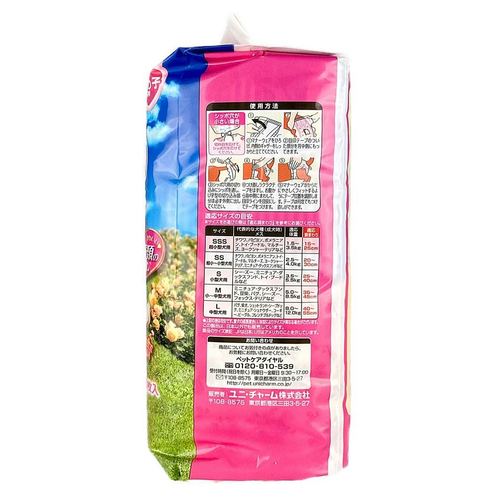 【ケース販売】ユニ・チャーム マナーウェア 女の子用 SSSサイズ ピンクリボン・青リボン 超小型犬用 18枚(1ケース15個入り) マナーウェア オムツ 尿漏れ防止 3482240015【別送品】