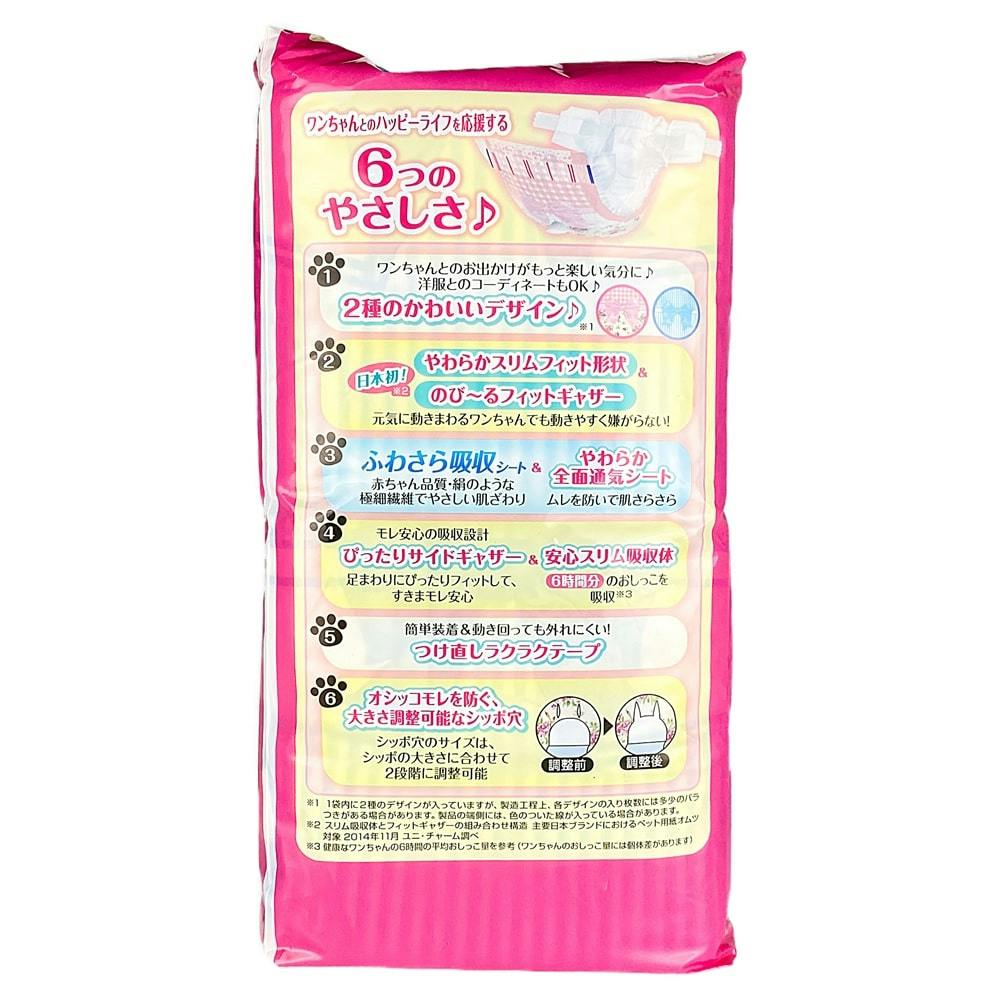 ●2種のかわいいデザイン●やわらかスリムフィット形状●ふわさら吸収シート&やわらか全面通気シート●ぴったりサイドギャザー&安心スリム吸収体●つけ直しラクラクテープ 簡単装着&動き回っても外れにくい●オシッコモレを防ぐ、大きさ調節可能なシッポ穴