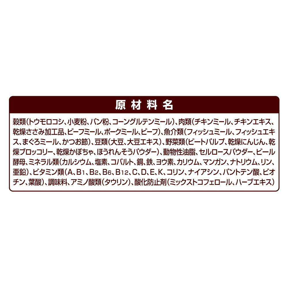 たんぱく質22.0%以上、脂質9.0%以上、粗繊維4.5%以下、灰分8.5%以下、水分10.0%以下