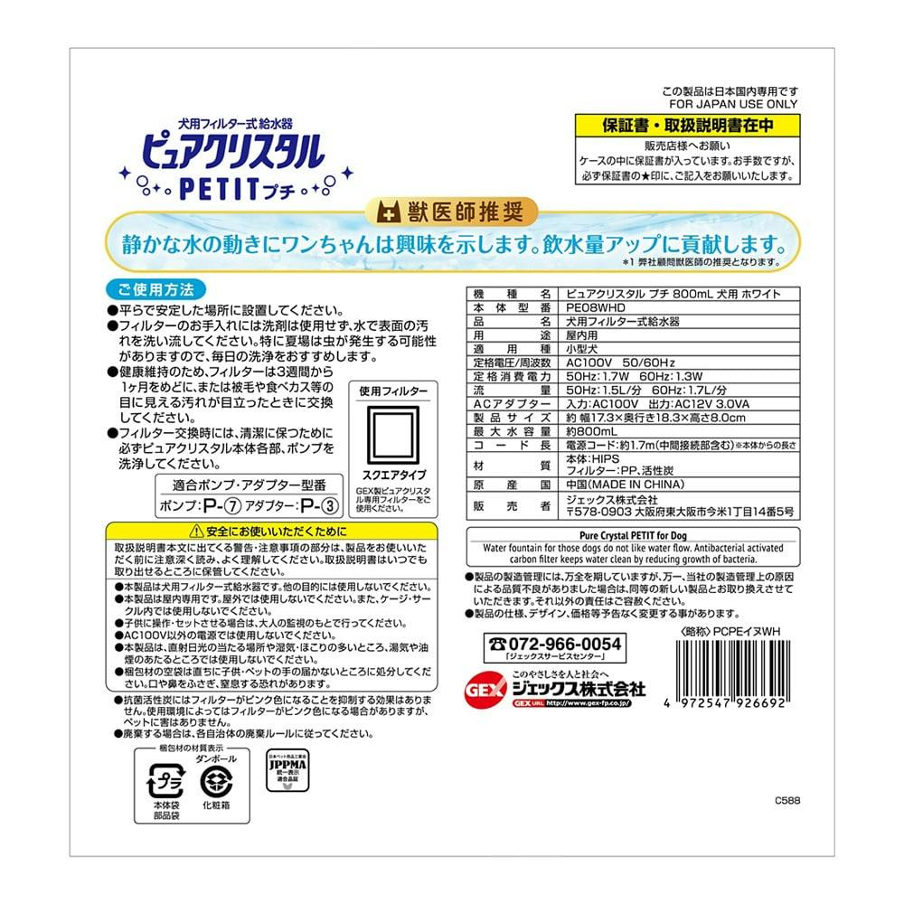【ケース販売】ピュアクリスタルプチ800ml犬用ホワイト(1ケース8個入り) 給水器 飲みやすい 怖がりにくい 3740611008【別送品】