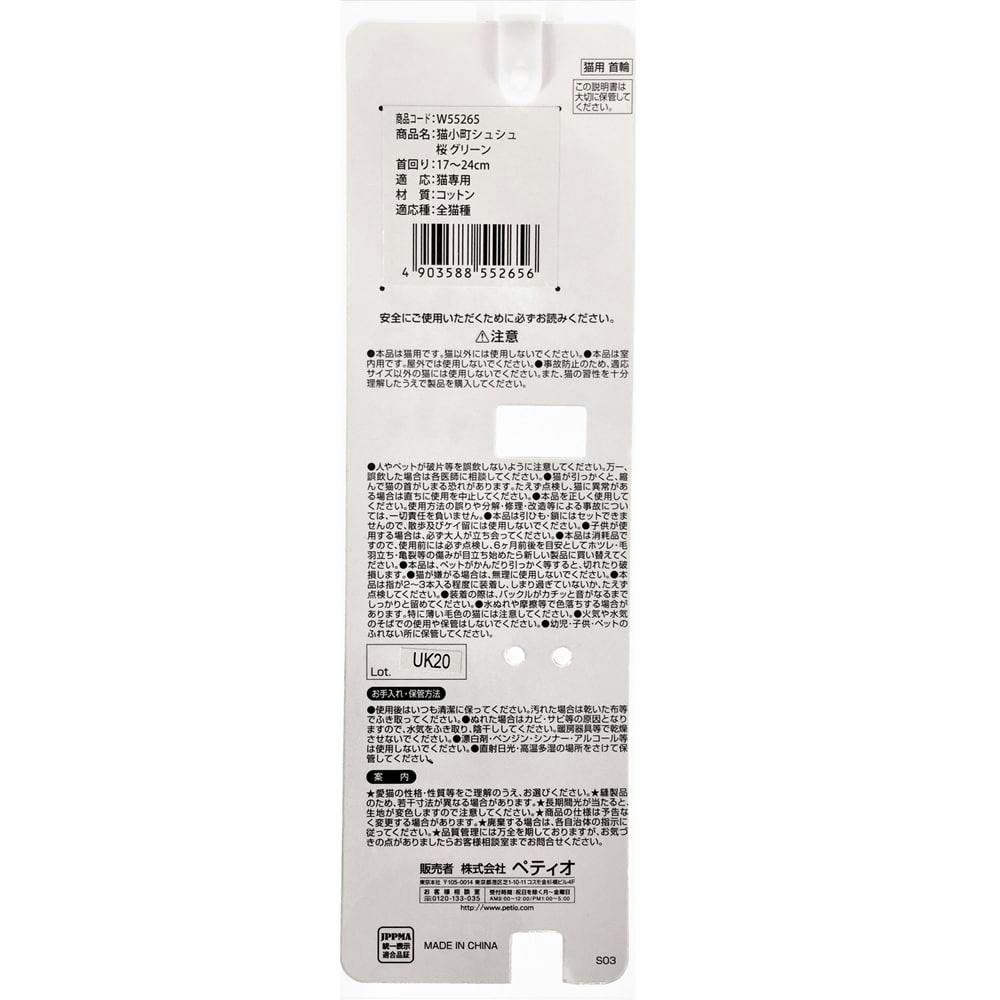 【ケース販売】猫小町シュシュ 桜 グリーン(1ケース6個入り) 猫用首輪 おしゃれ 鈴付き 3416492006【別送品】