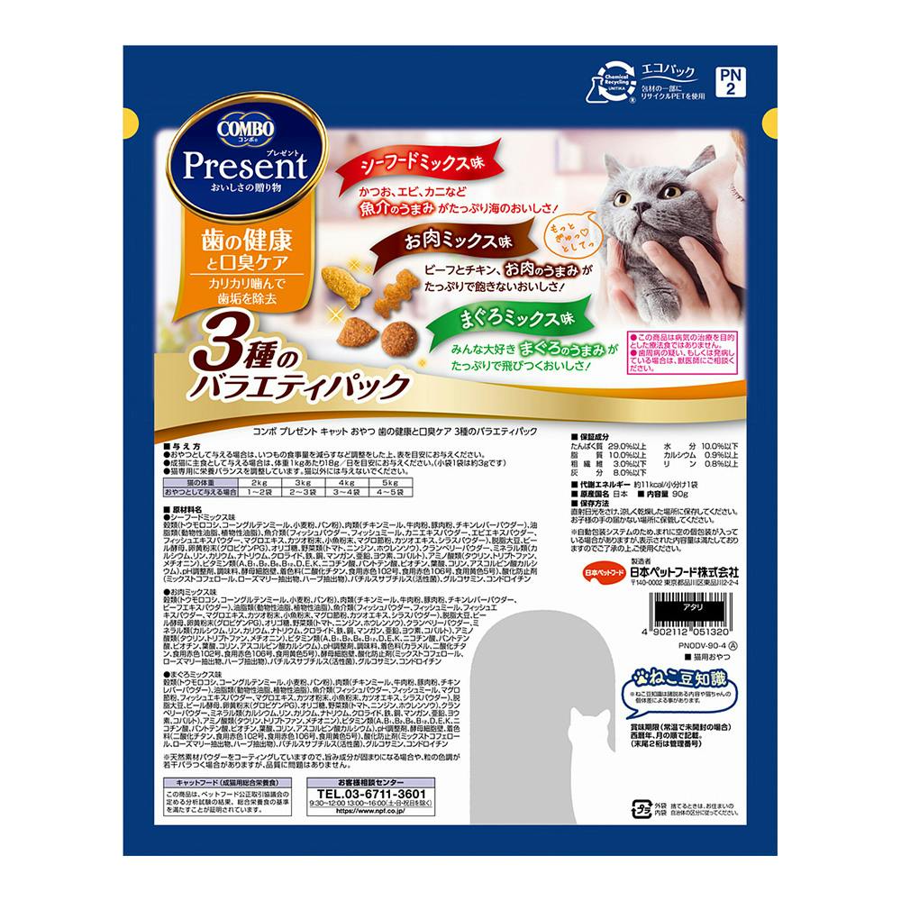 【ケース販売】 プレゼントおやつ 歯の健康ケアバラエティ90g(1ケース15個入り) 総合栄養食 小分け キャットフード 1011270015【別送品】