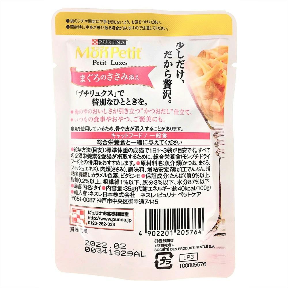 【ケース販売】ネスレ日本 モンプチ プチリュクスパウチ まぐろのささみ添え(1ケース48個入り)1060958048 4902201205764【別送品】