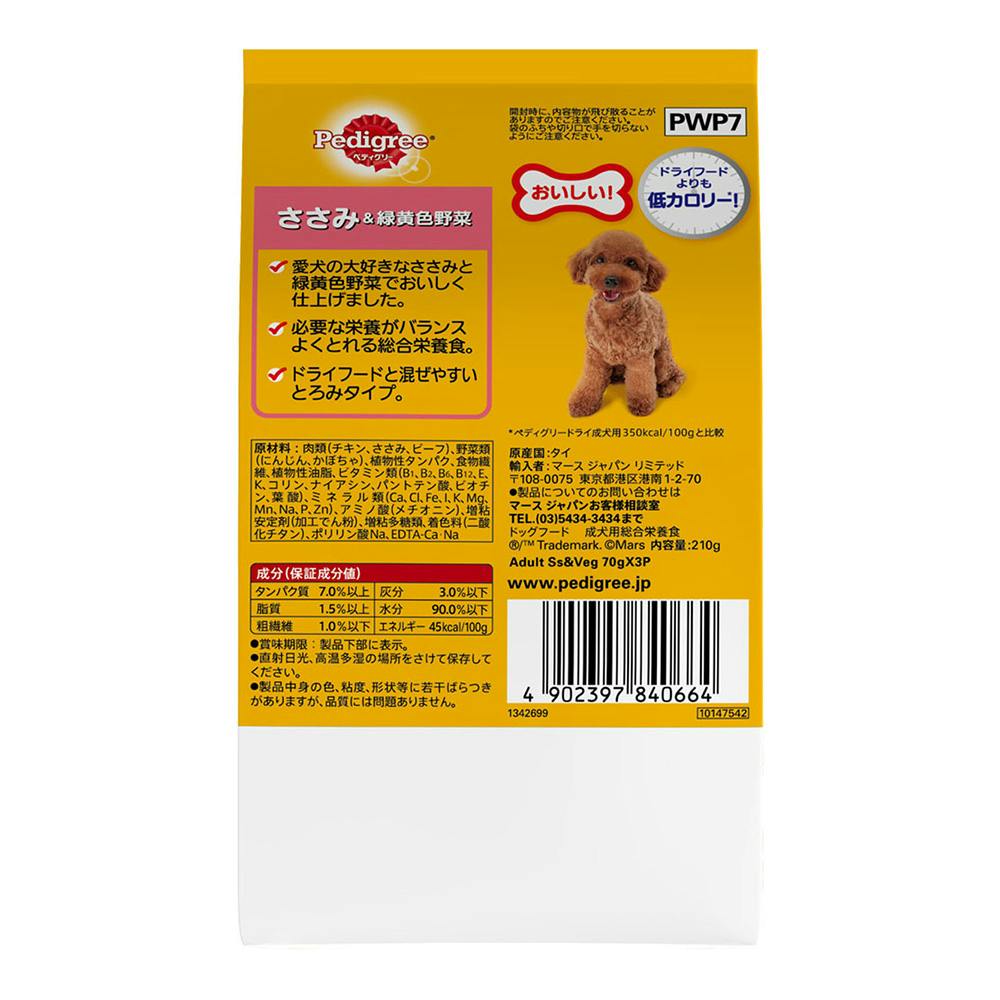 【ケース販売】マースジャパン リミテッド ペディグリーP 成犬ささみ野菜 70g×3袋(1ケース48個入り)1080766048 4902397840664【別送品】