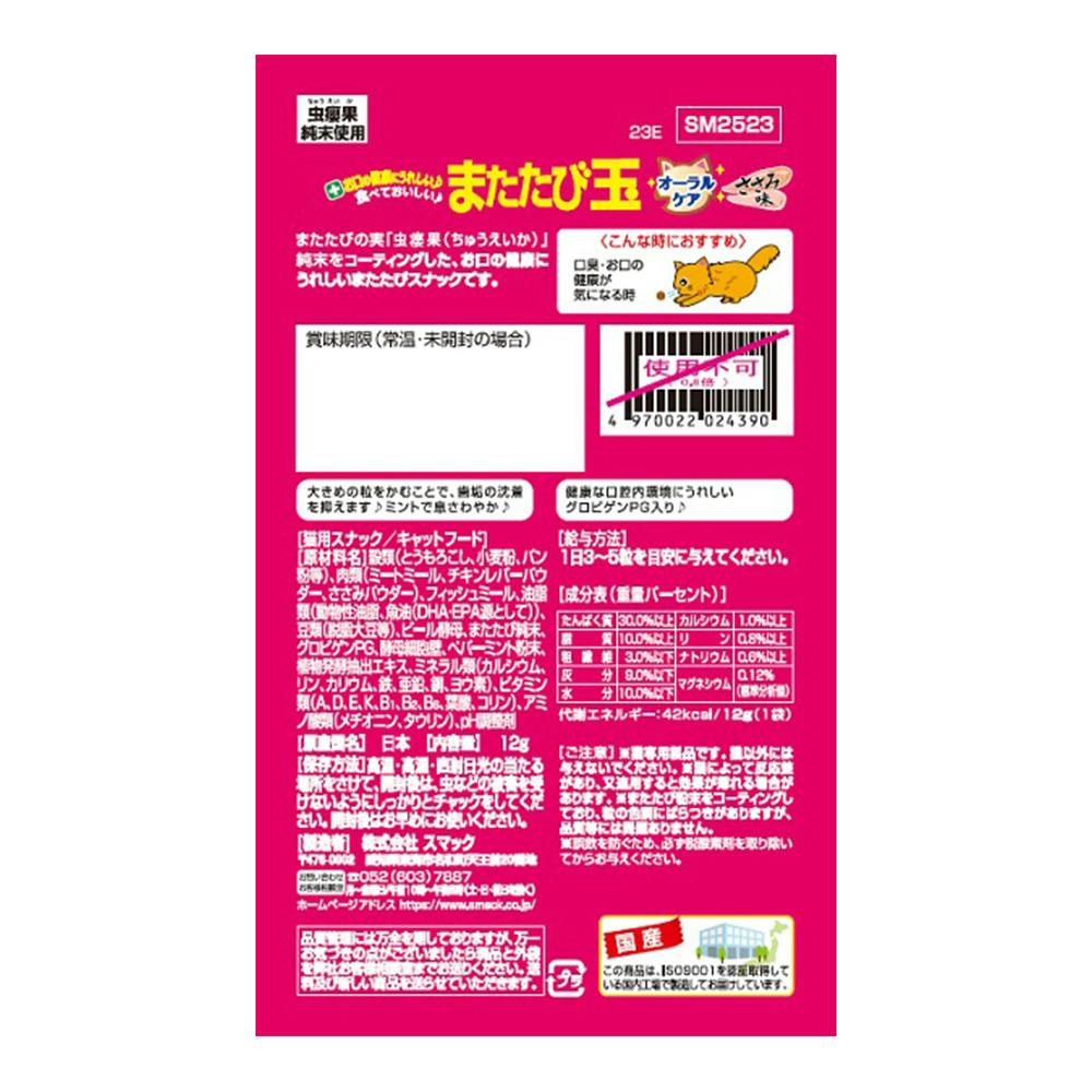 【ケース販売】 またたび玉オーラルケア ささみ12g(1ケース40個入り) 猫用 食欲が落ちてきた時 イライラしている時に 1610689040【別送品】