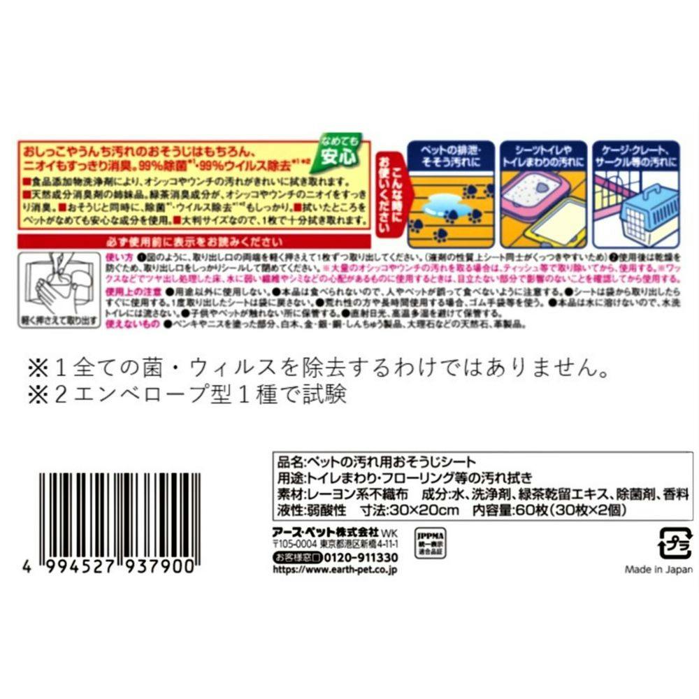 【ケース販売】オシッコ汚れ専用 おそうじシート30枚×2P(1ケース20個入り) 犬 抗菌シート ペットのおそうじ 3140544020【別送品】