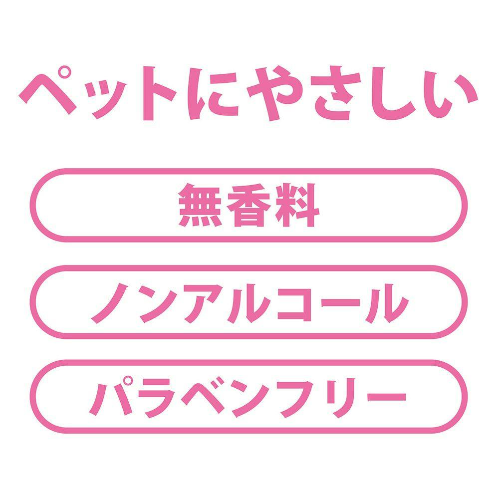 ふき取るだけで顔まわりの汚れ&気になる部分のケアもできる、ペットにやさしい無香料・ノンアルコール・パラベンフリー、デリケート部分を守るうるおい成分、桃の葉エキス・セラミド入、においもスッキリ、カキタンニン・緑茶乾留エキス入。