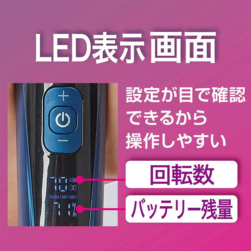 ボタン1つでモーターパワーの調節ができるRPM調節機能搭載。短い毛に合わせてより細かくカットが出来る刈上高さスライド機能付。被毛に合わせてショートからロングまで調節が出来るアタッチメント付。USB充電式仕様スタンドでも手軽に充電可能まるごと水洗いOK
