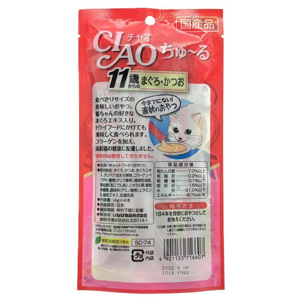 【ケース販売】いなば CIAOちゅ~る 11歳 まぐろかつお 4本(1ケース48個入り)チャオちゅーる 国産 高齢 ペット用 おやつ 猫用 3751172048【別送品】