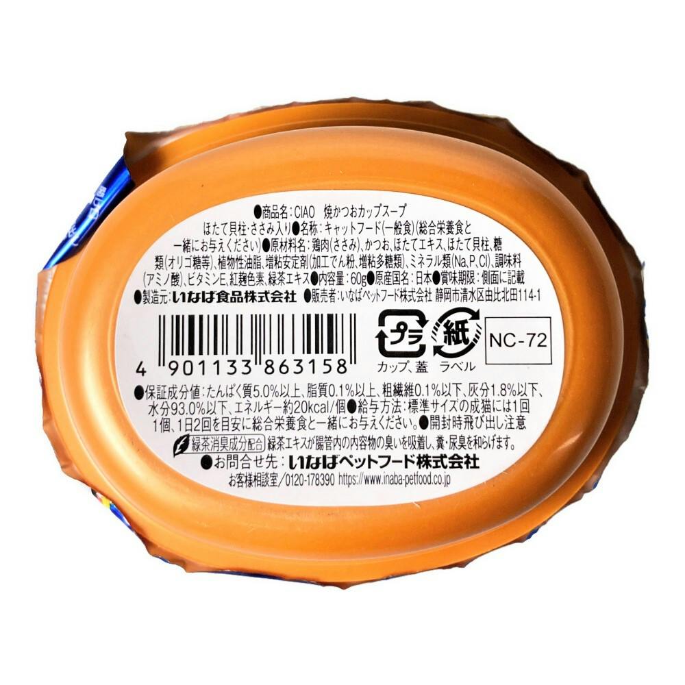 【ケース販売】いなば 焼かつおカップ ほたて貝柱 60g(1ケース48個入り) 国産 ペット用 ウェットフード 猫用 3751618048【別送品】