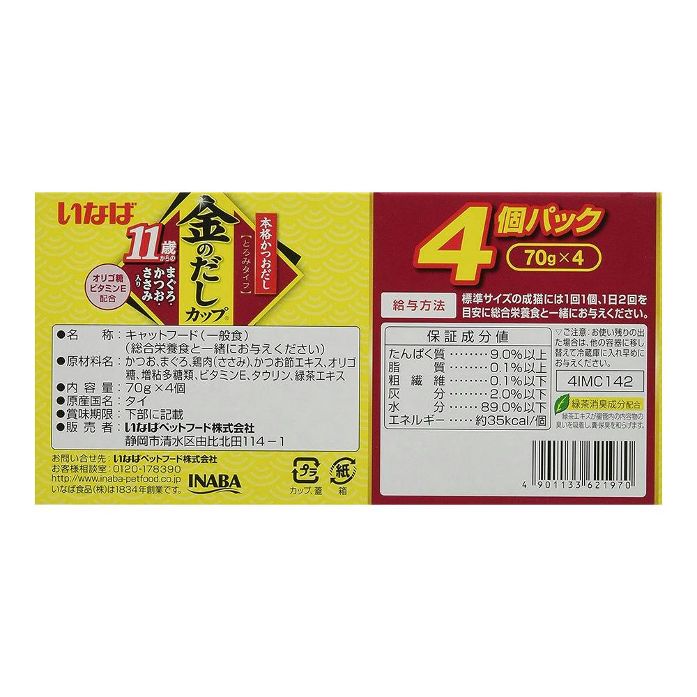 【ケース販売】いなば 金のだし カップ 4個パック 11歳ささみ入り(1ケース12個入り) ペット用 ウェットフード 猫用 3751881012【別送品】