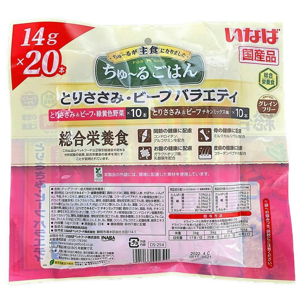 【ケース販売】いなば ちゅ~るごはんささみビーフバラエティ14g 20本(1ケース16個入り)ちゅーる 国産 ペット用 おやつ 犬用 3752852016【別送品】