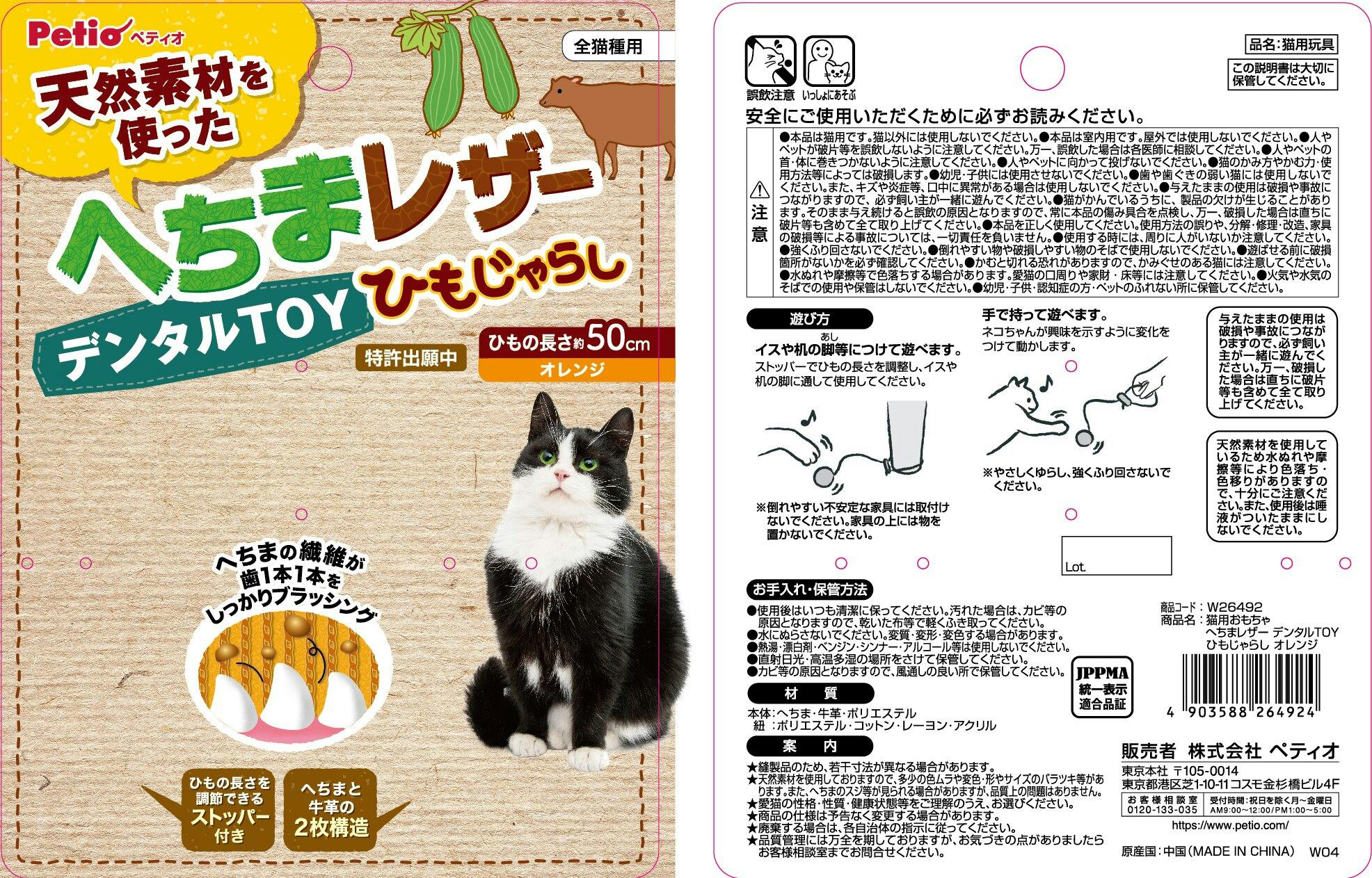 【ケース販売】ペティオ ヘチマレザーデンタルTOY ひもじゃらし オレンジ(1ケース144個入) 猫 用品 玩具・アジリティグッズ 3418078144【別送品】