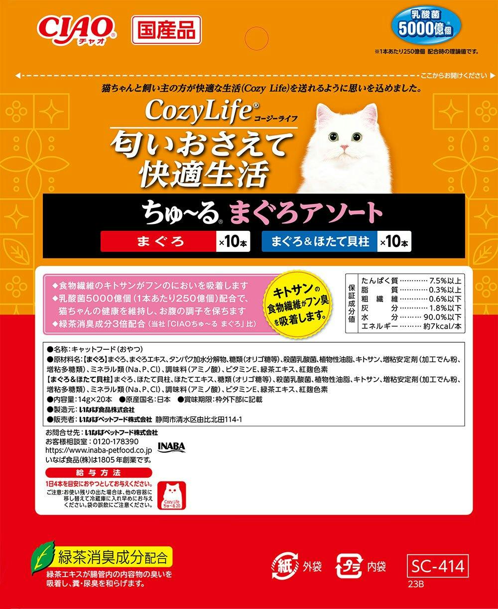 【ケース販売】いなば CIAO CozyLife ちゅ~る 匂いおさえて快適生活 まぐろアソート(1ケース16個入)チャオちゅーる キトサン 国産 4901133087073 スナック 猫フード 嗜好性抜群 3754053016【別送品】