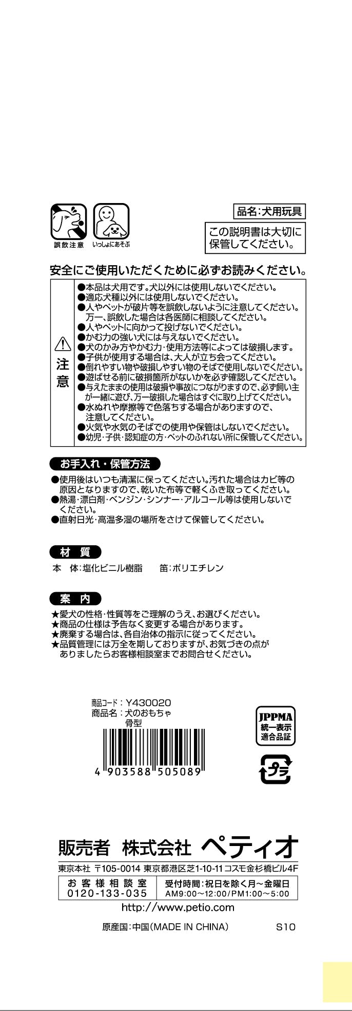 ペティオ 犬のおもちゃ骨型Y4300 4903588505089 371035001【別送品】
