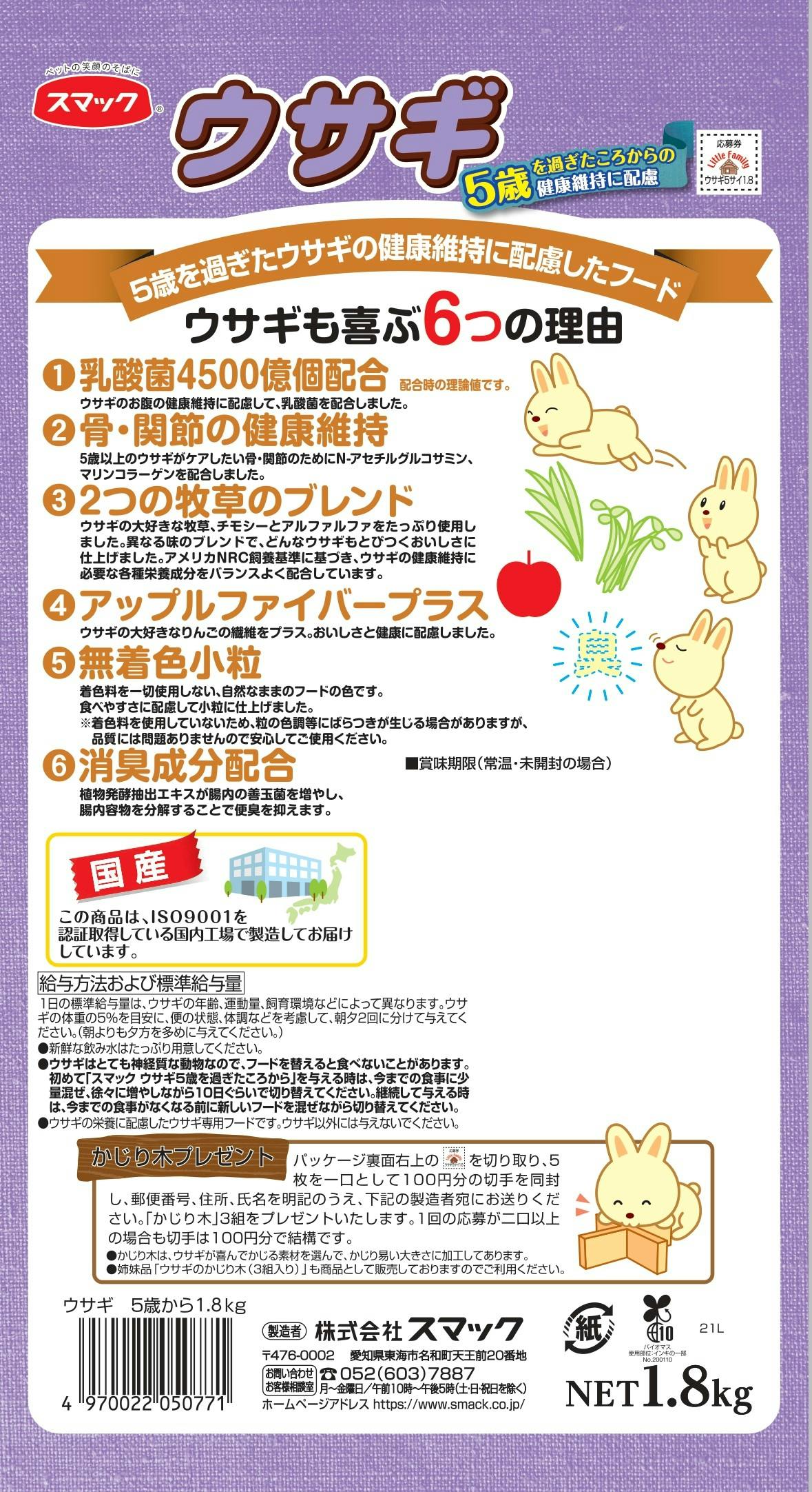 スマック ウサギ5歳から1.8kg 骨・関節のために フード 健康維持 1610588001【別送品】