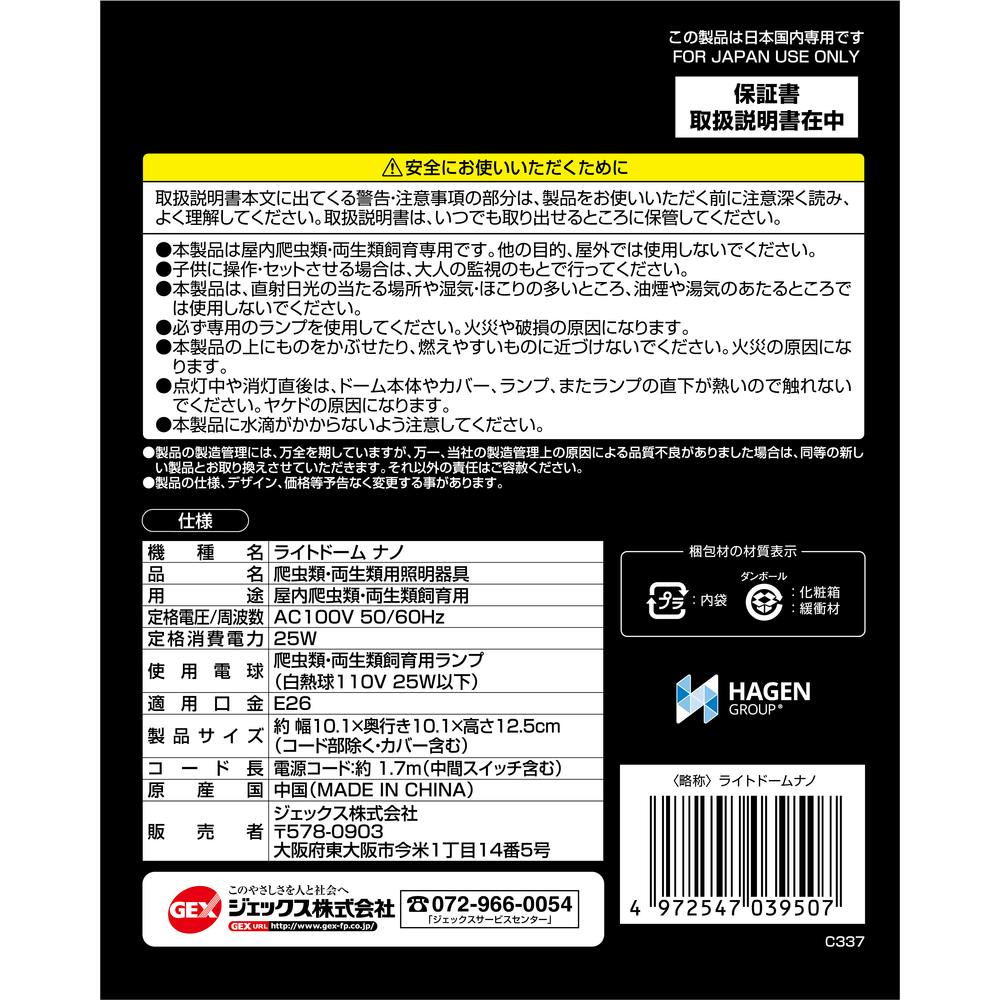 ジェックス ライトドームナノ 爬虫類・両生類 用品 爬虫類・両生類用紫外線照明器具 1743567001【別送品】