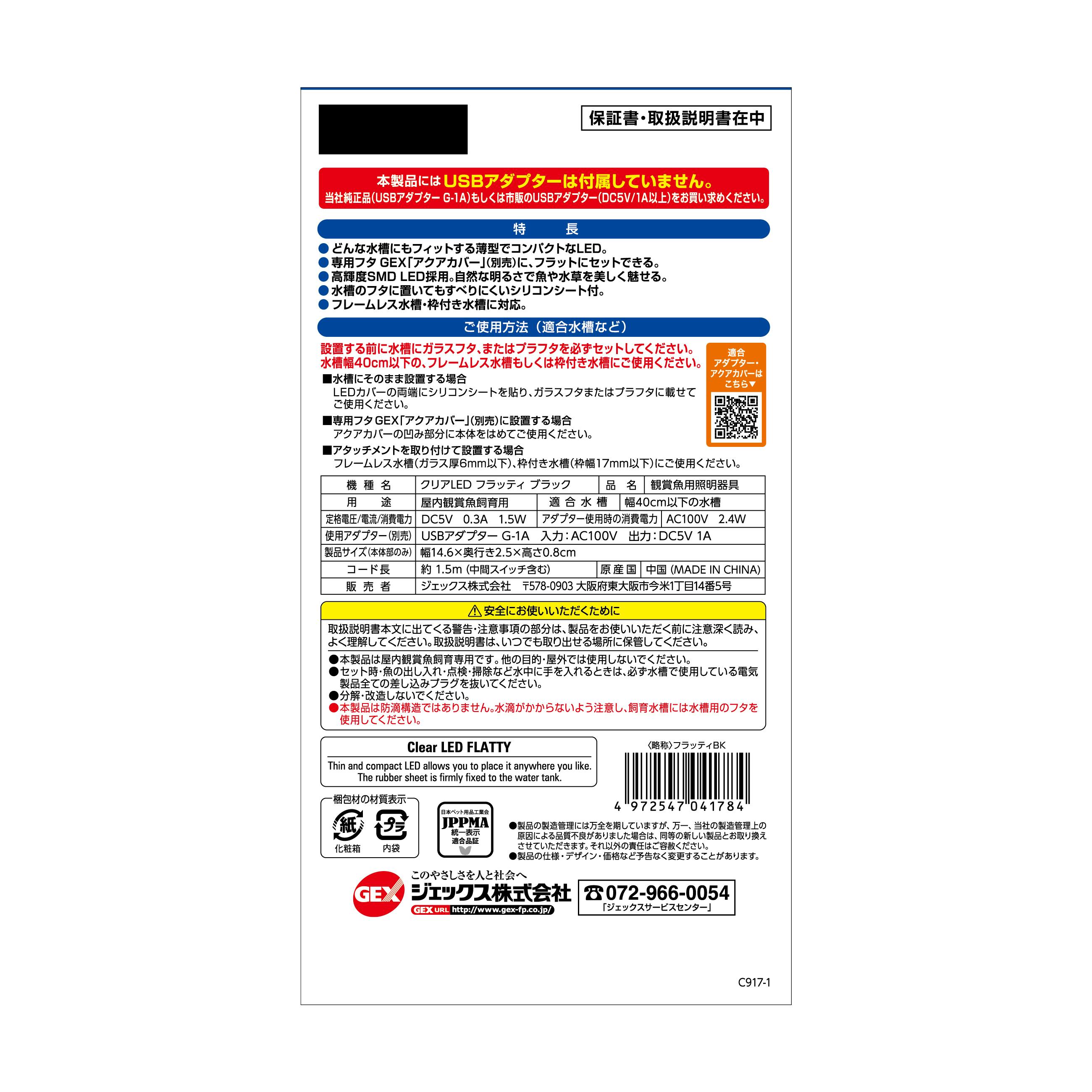 ●どんな水槽にもフィットする薄型でコンパクトなLED●高輝度SMD LED採用。青色LEDで水槽内を幻想的に照らす●専用フタGEX「アクアカバー」(別売)に、フラットにセットできる●水槽のフタに置いてもすべりにくいシリコンシート付●フレームレス水槽・枠付き水槽に対応●USBアダプターは付属していません。当社純正品(G-1A)もしくは市販のUSBアダプター(DC5V/1A以上)をお買い求めください。
