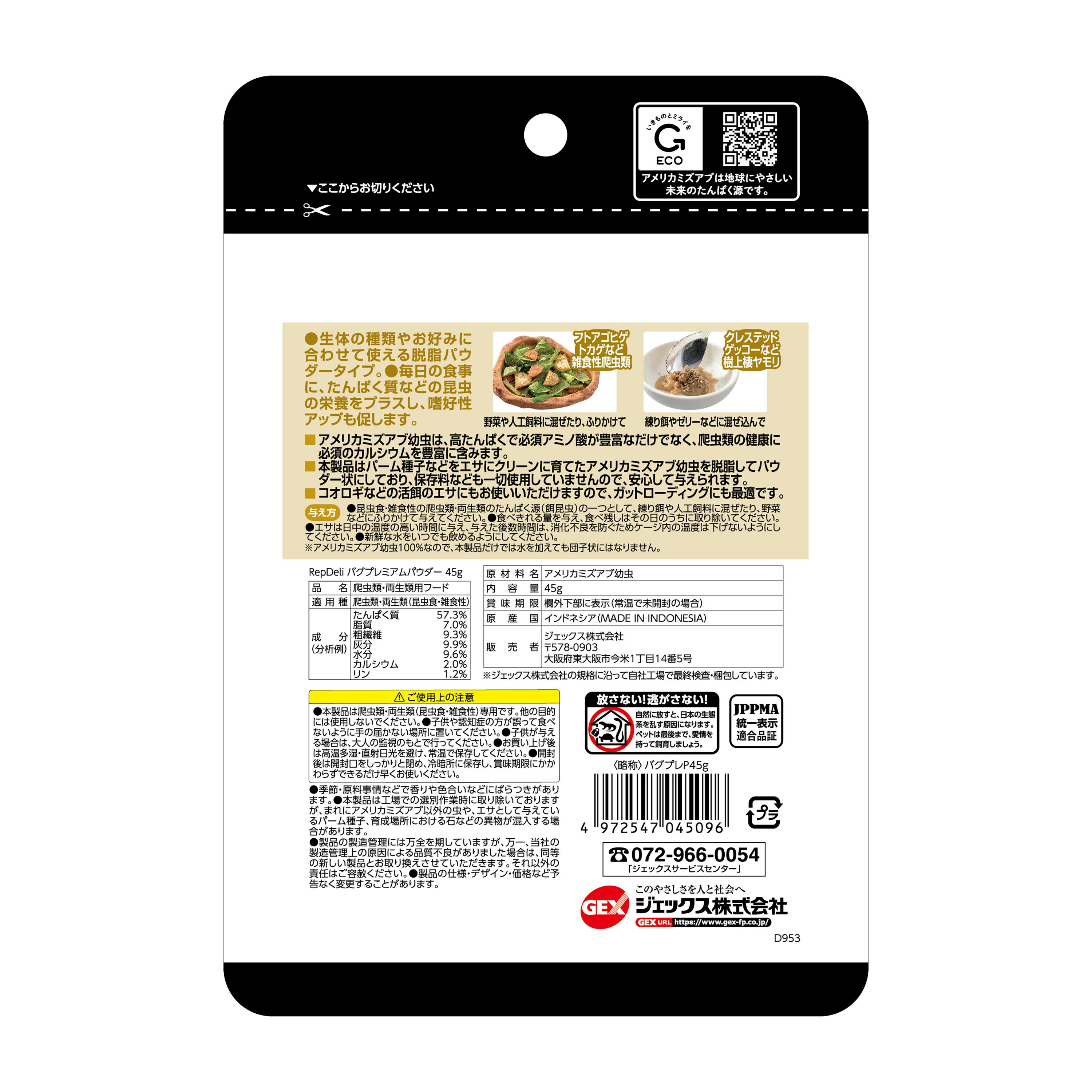ジェックス RepDeliバグプレミアムパウダー45g 爬虫類・両生類 フード 爬虫類・両生類用フードドライ 1744391001【別送品】