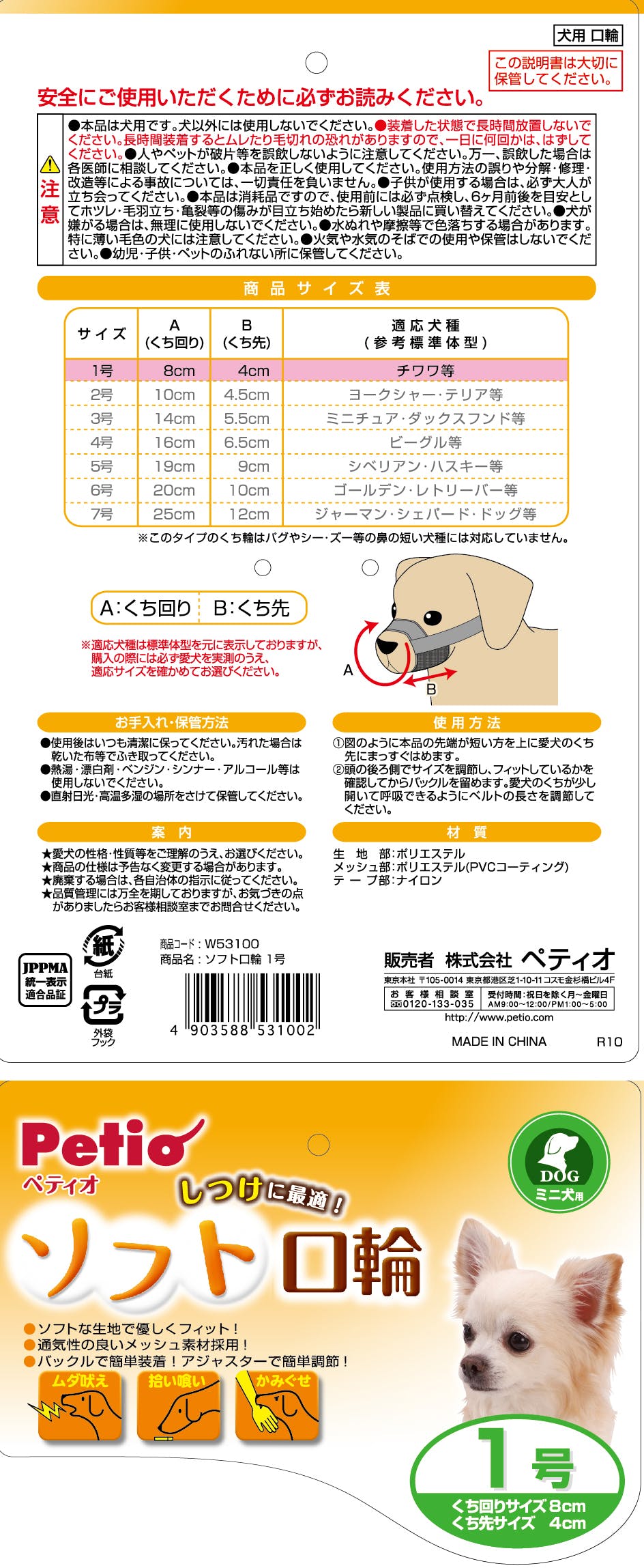 ペティオ ソフト口輪1号 犬 用品 しつけ用品・しつけ剤 3413594001【別送品】