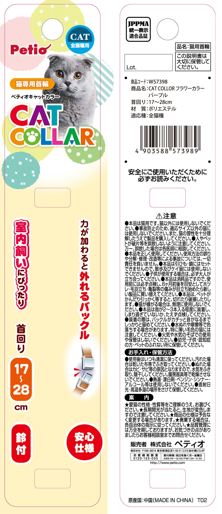 ペティオ CAT COLLARフラワーカラーパープル 猫 用品 首輪 3416922001【別送品】