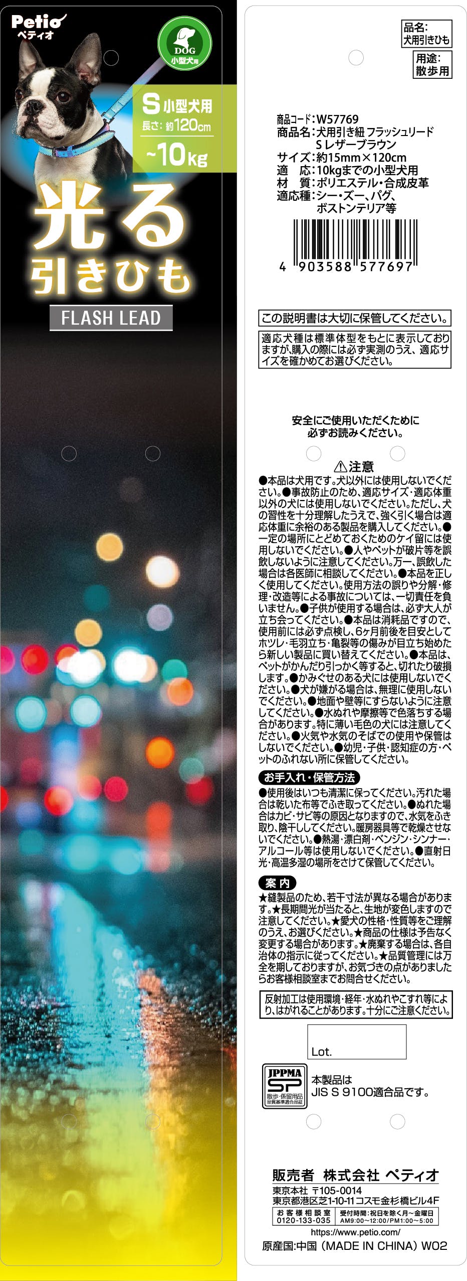 ペティオ フラッシュリードレザーブラウンS 犬 用品 引き紐(セット含む) 3418095001【別送品】