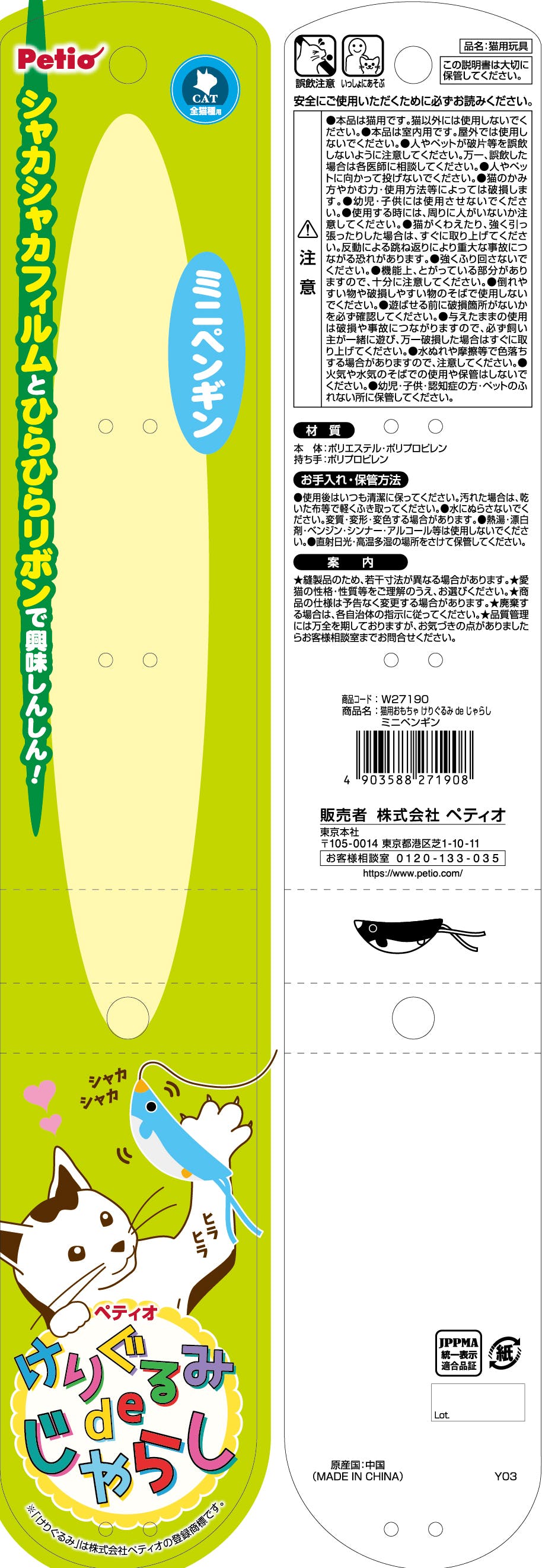 ペティオ けりぐるみdeじゃらしミニペンギン 猫 用品 玩具・アジリティグッズ 3418855001【別送品】