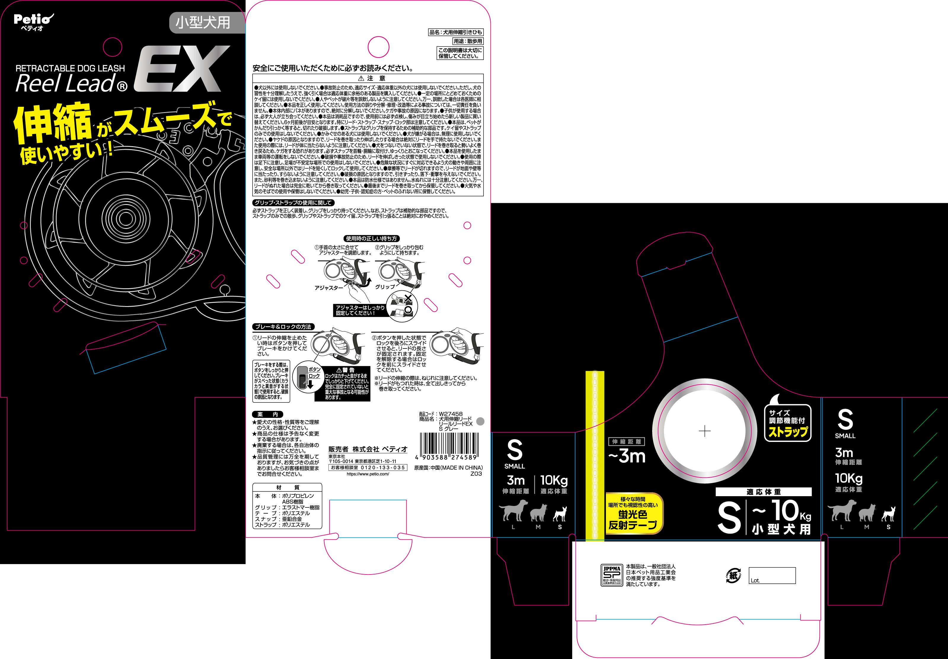 ペティオ リールリードEXグレーS 犬 用品 伸縮リード 3419165001【別送品】