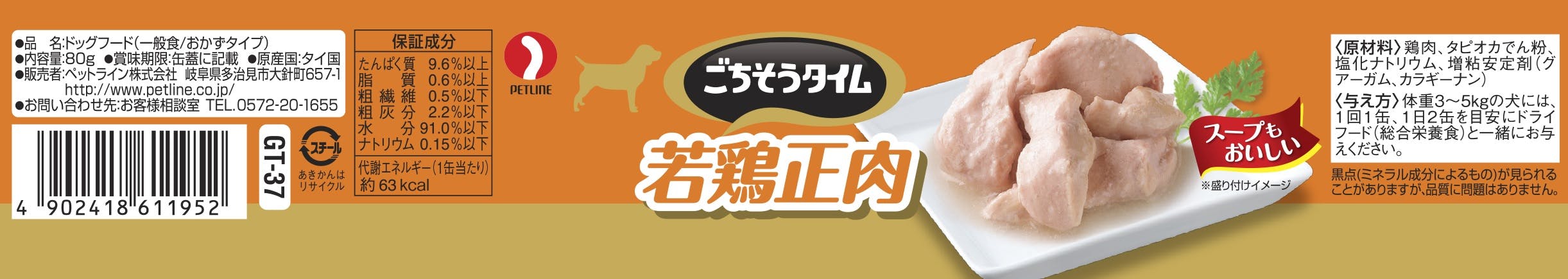 鶏肉、タピオカでん粉、塩化ナトリウム、増粘安定剤(グアーガム、カラギーナン)