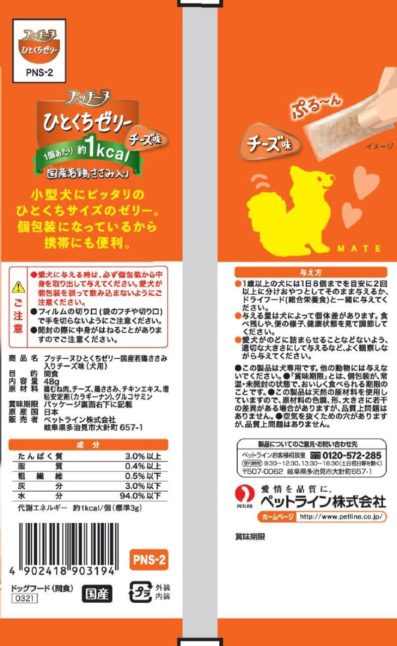 ペットライン プッチーヌ ゼリー チーズ 48g 4902418903194 1041003001【別送品】