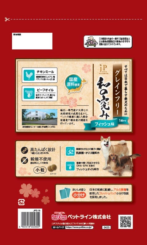 穀類不使用。国産原料を使用したJPスタイルシリーズからグレインフリーをお届け。高たんぱく設計(1歳から比約140%)、お魚派の愛犬にフィッシュ味。