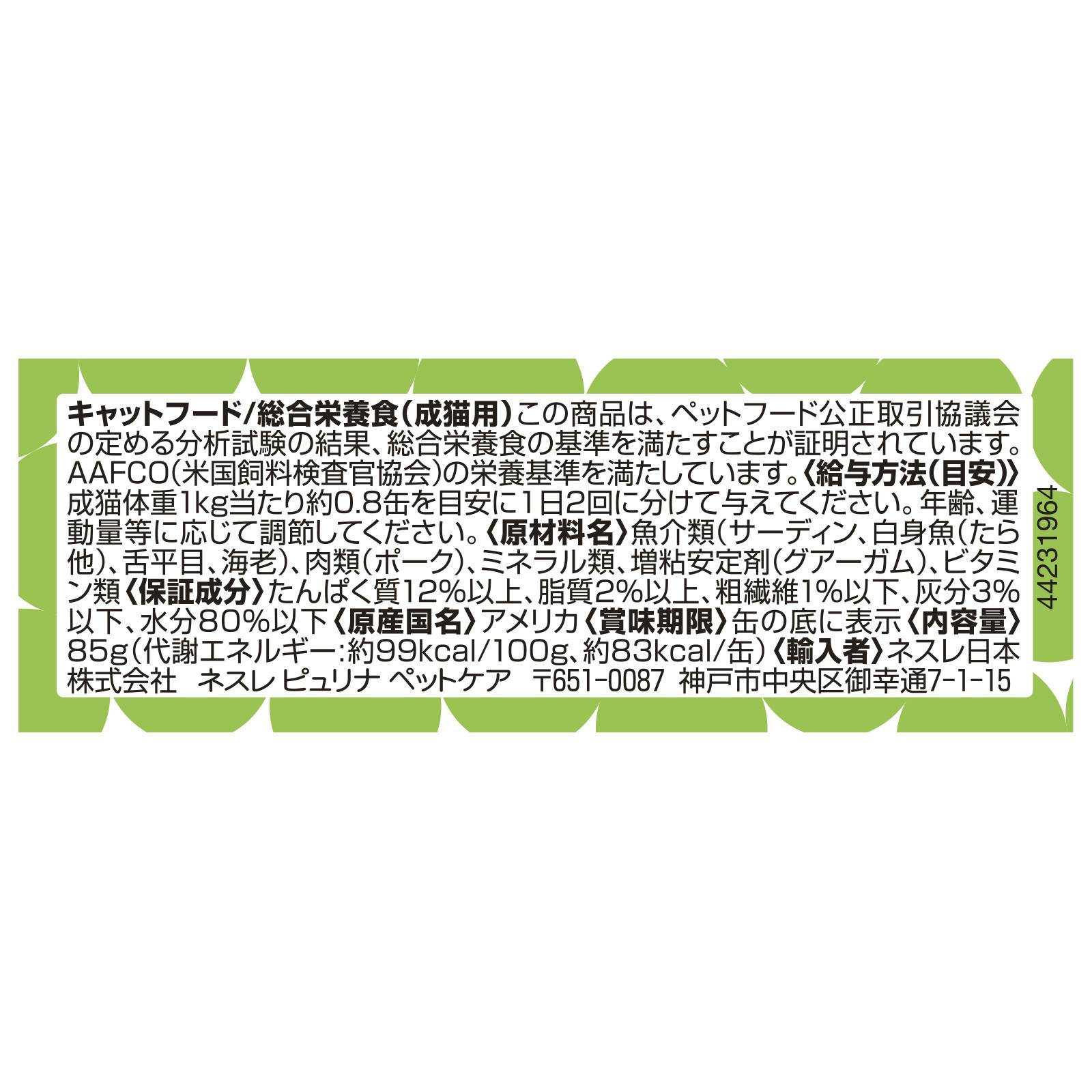 たんぱく質:12%以上、脂質:2%以上、粗繊維:1%以下、灰分3%以下、水分80%以下