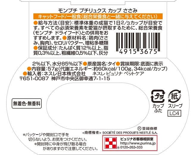 ネスレ日本 モンプチ プチリュクスカップささみ57g 猫用 ウェット 嗜好性 1060964001【別送品】
