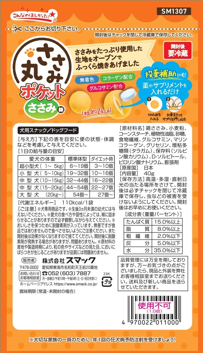 スマック ささみ丸ポケットささみ味40g 4970022011000 1610183001【別送品】