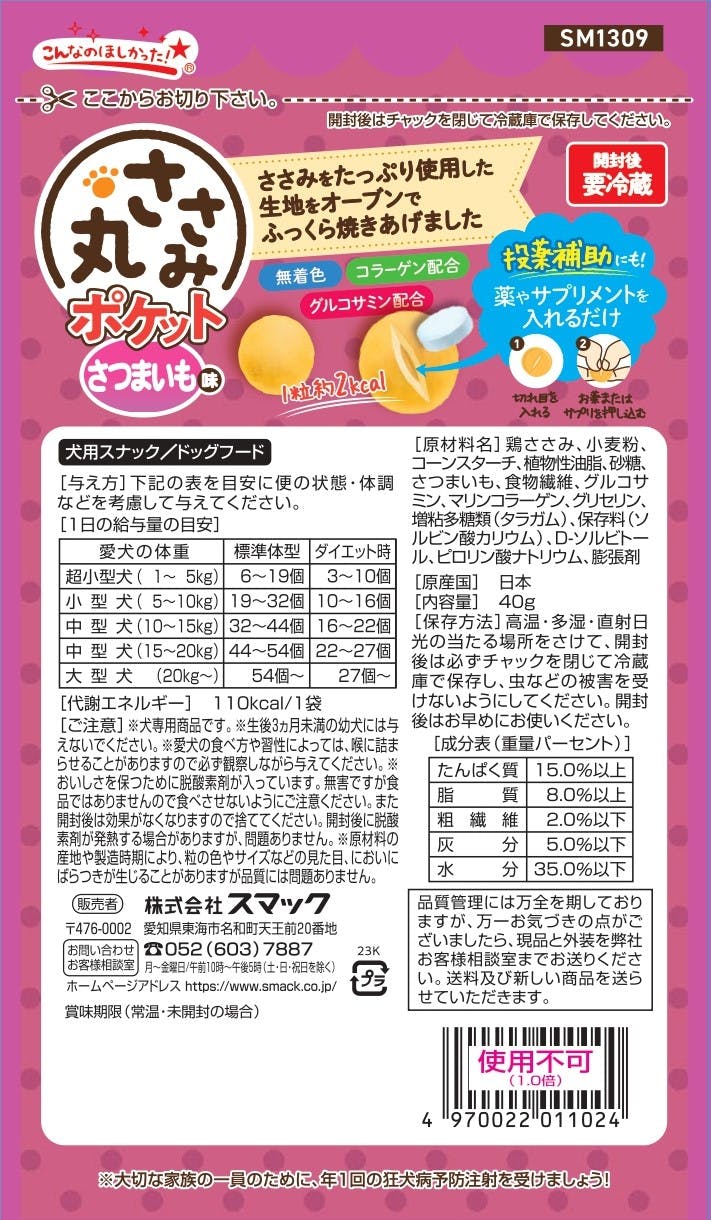 スマック ささみ丸ポケットさつまいも味40g 4970022011024 1610185001【別送品】