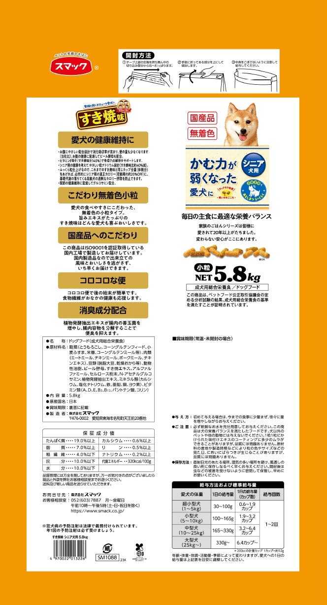 スマック 家族のごはんすき焼味シニア犬5.8kg 犬用 ドライフード 嗜好性抜群 1610501001【別送品】