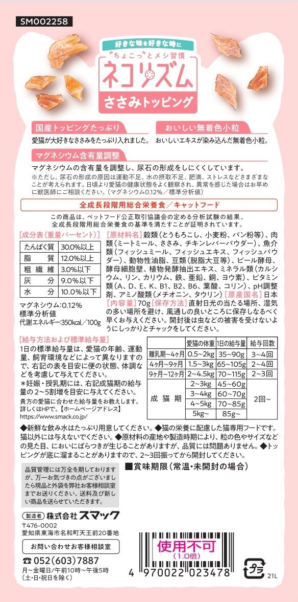 スマック ネコリズム ささみトッピング70g 4970022023478 1610563001【別送品】